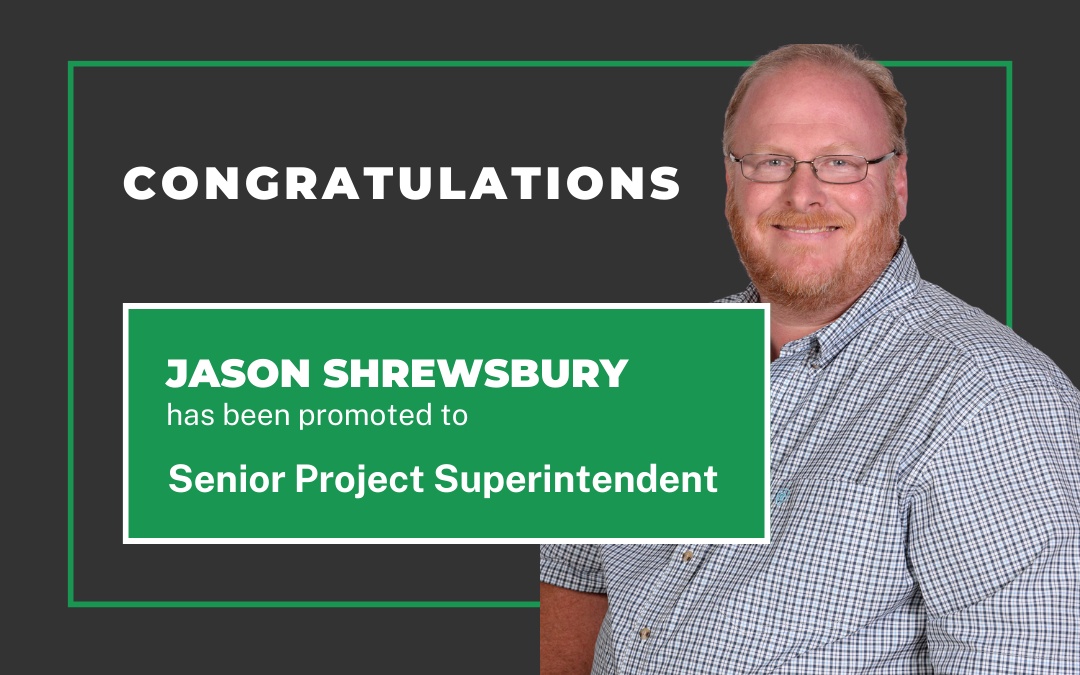 Congratulations to Jason Shrewsbury for his recent promotion to Senior Project Superintendent! Jason’s hands-on approach, big picture perspective, and knowledge of a variety of trades make him an integral member of Gbuild.