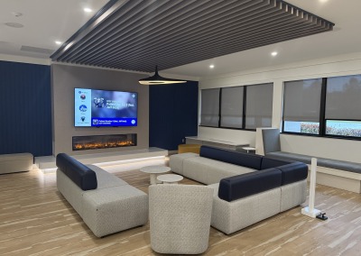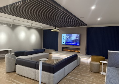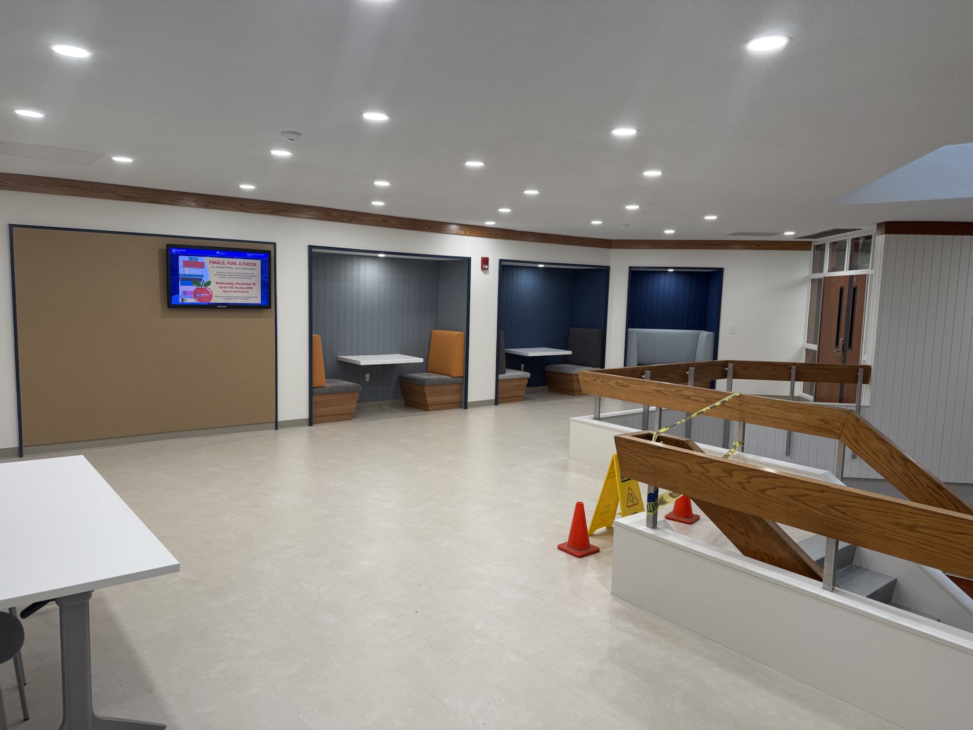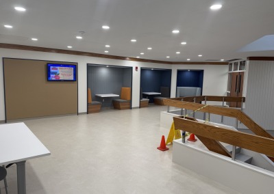 This project focused on interior renovations to the Perkins Student Center lounge and lobby area. Improvements included a new vestibule storefront, ceilings, flooring, painting, lighting, and furniture.